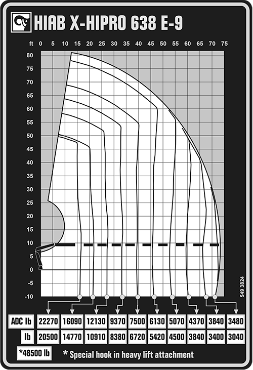 La grue montée sur camion HIAB X-HiPRO 638 bénéficie de fonctionnalités supplémentaires qui en font une nouveauté incontrounable sur trois roues. Puissante et compacte, cette grue télécommandée est fabriquée en acier léger à haute resistance pour maxmiser la charge utile et s’attaquer aux travaux les plus exigeants. Le modèle de base X-HiPRO 638-E9 peut lever 1 580 kg à 22,2 m. La X-HiPRO 638-E8 équipée de la flèche 150X-6 allongée, peut lever 360 kg à 32,1 m. La X-HiPRO 638 offre une grande flexibilité et une grande maniabilité pour des manœuvres rapprochées ou en angle avec stabilité et precision.